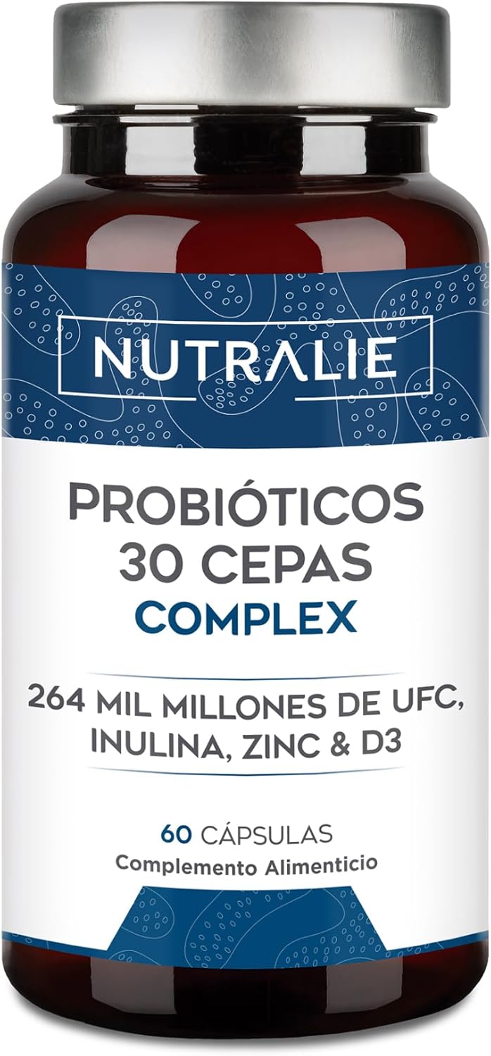 Complemento probiótico de alta potencia con 30 cepas bacterianas, que combina lactobacilos, bifidobacterias y otros fermentos para apoyar el equilibrio de la microbiota intestinal. Aporta 264 mil millones de UFC por dosis diaria, con cápsulas gastrorresistentes que garantizan su liberación prolongada en el intestino. Enriquecido con zinc, vitamina D3 e inulina, contribuye al metabolismo normal y al soporte digestivo. Diseñado como tratamiento mensual, se toma de dos a cuatro cápsulas al día antes de las comidas.